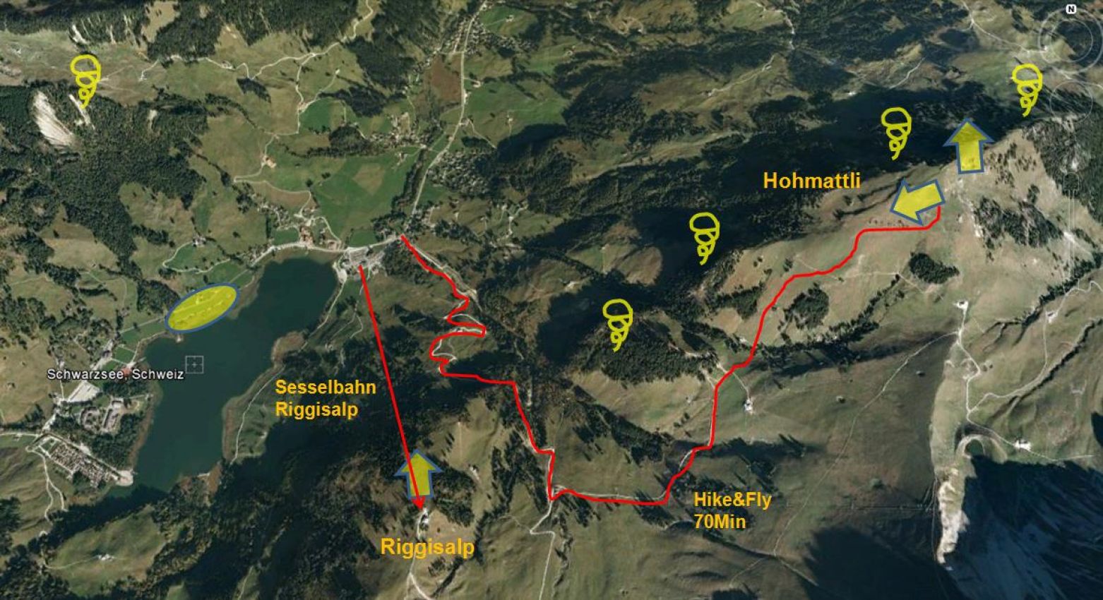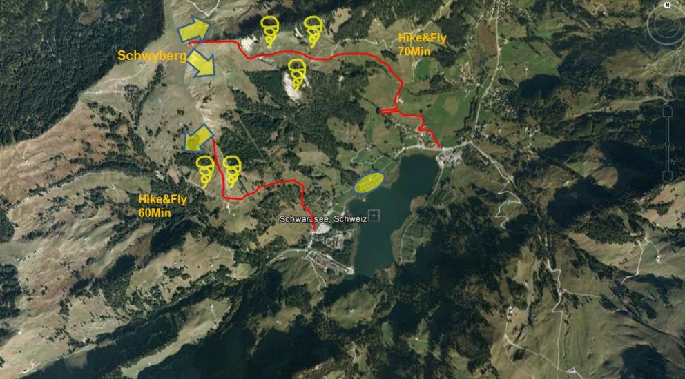 Höhe Landeplatz Schwarzsee: 1050 m ü. M.